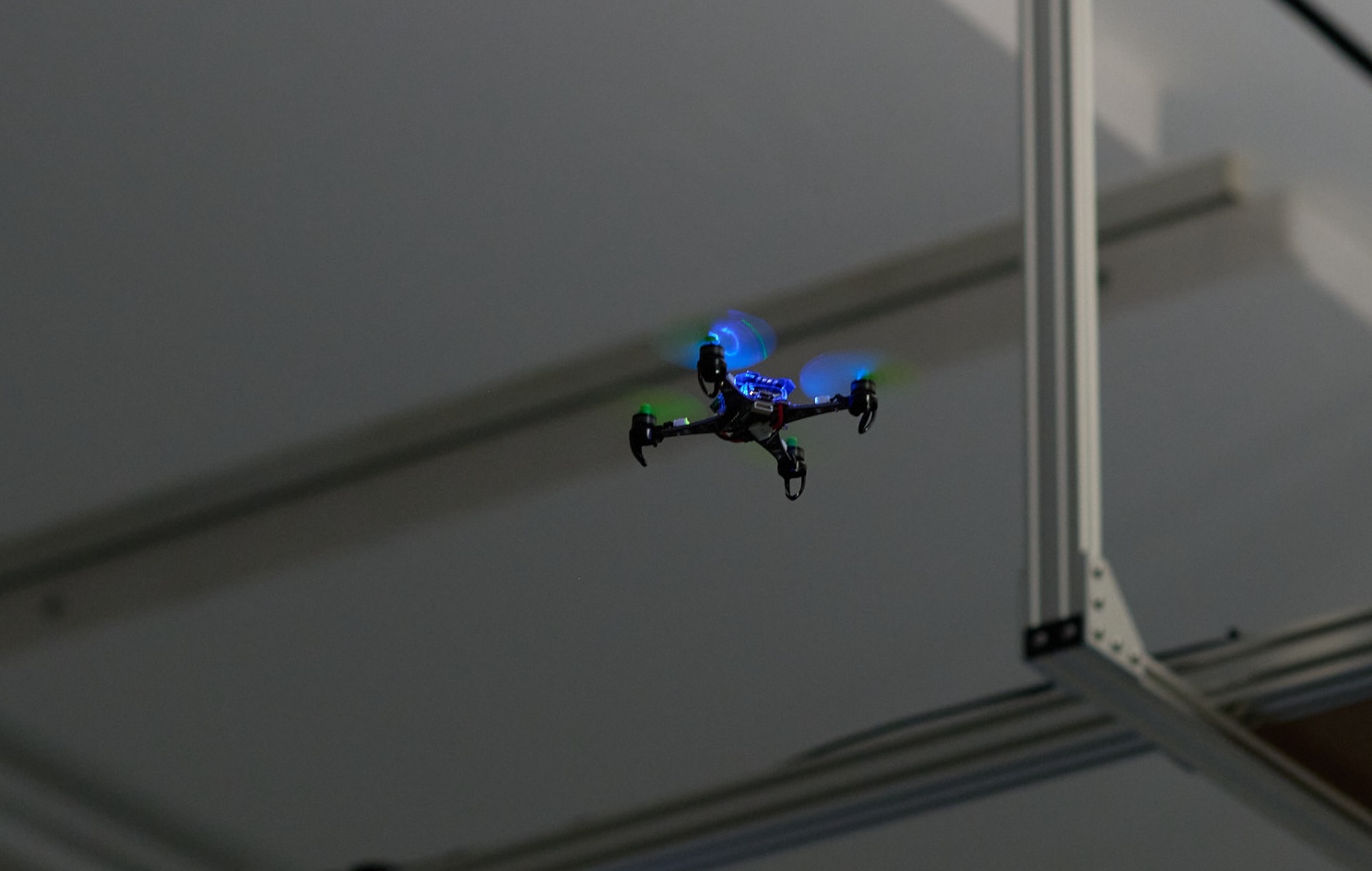 Artist Joe Moss presents his installation 'Automated Fantasy Procedure' at Matt's Gallery in London. The work features a squadron of choreographed dro…