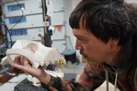 A new installation by artist Cannupa Hanska Luger at the 2026 Biennale of Sydney features seven ceramic dingo skulls with whistles that create a howli…