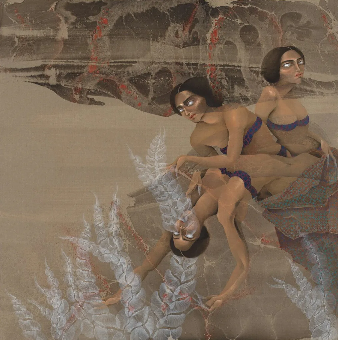 Hayv Kahraman's latest solo show, "Ghost Fires," at Jack Shainman Gallery in New York City features paintings of women with smoke rising from their fi…