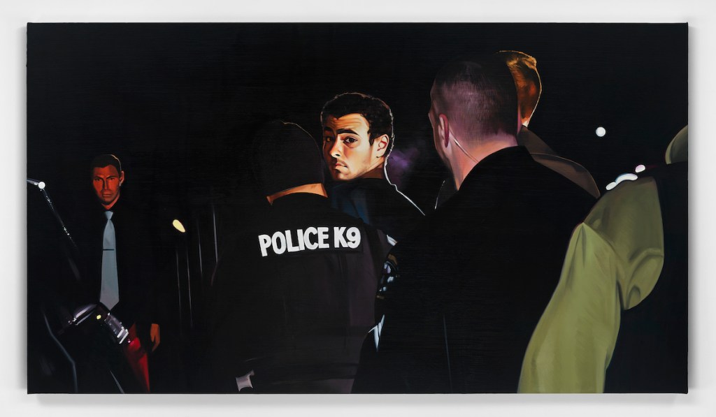 Sam McKinniss's new exhibition "Law and Order" at Jeffrey Deitch in New York presents paintings of viral and iconic figures, including Jeremy Meeks, Luigi Mangione, Chuck Bass from Gossip Girl, and riderless horses running through urban streets. The show explores how social media blurs the lines between advertising, entertainment, and politics, capturing the experience of scrolling through online content. The article, part of ARTnews's Link Rot column by Shanti Escalante-De Mattei, examines McKinniss's attempt to illustrate the feeling of living in contemporary America through curated images of law enforcers and law breakers.