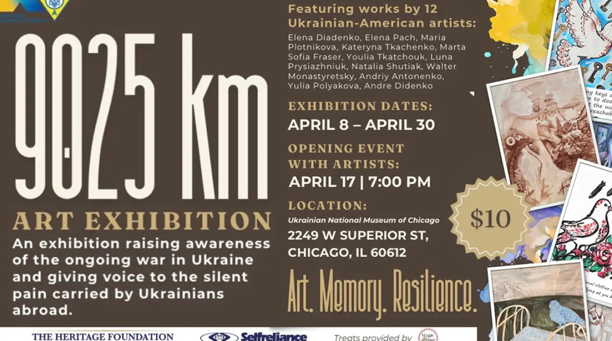 The Ukrainian National Museum in Chicago is launching "9,025 km," a group exhibition featuring 12 Ukrainian-American artists based in the city. The show presents 36 original works that explore the emotional and cultural distance between Chicago and its sister city, Kyiv, while addressing the ongoing trauma of the war in Ukraine. Participating artists include Yuliia Poliakova, whose work has previously been displayed in the offices of President Volodymyr Zelenskyy, alongside Olena Diadenko, Andrii Antonenko, and others.