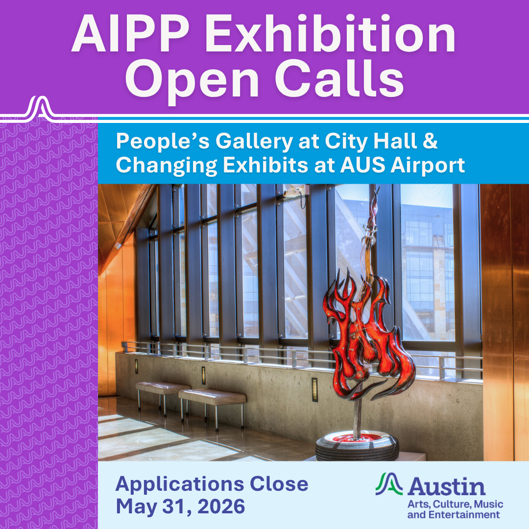 The Austin Arts, Culture, Music, and Entertainment (ACME) department has launched open calls for two major public art initiatives: the 2026–28 People’s Gallery at Austin City Hall and the 2026 Changing Exhibits Program at Austin-Bergstrom International Airport. Local artists and organizations from the Austin area are invited to submit 2-D and 3-D works for the City Hall exhibition, while the airport program seeks multi-disciplinary proposals under the theme "Vestiges of the Future." Applications are open until May 31, 2026, with no submission fees required.