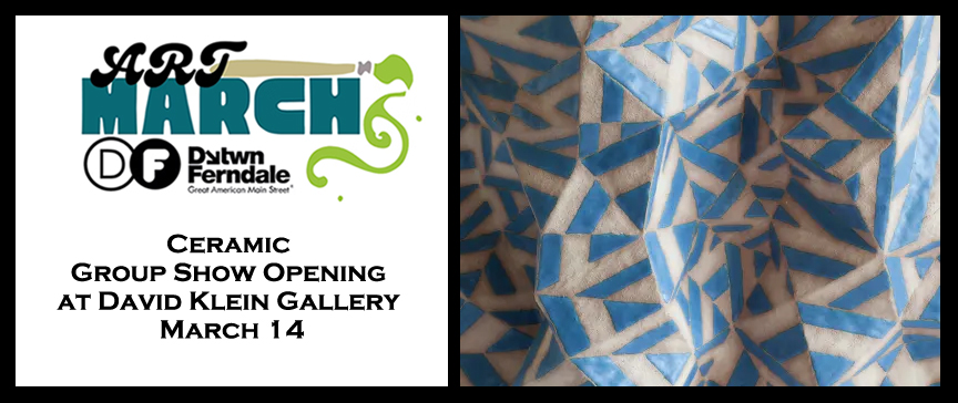 David Klein Gallery in Ferndale is set to host a specialized ceramic group exhibition featuring works by Marie Hermann, Del Harrow, and Ebitenyefa Baralaye. Opening on March 14, the show is integrated into the broader NCECA (National Council on Education for the Ceramic Arts) schedule, with a dedicated artist reception planned for March 27.
